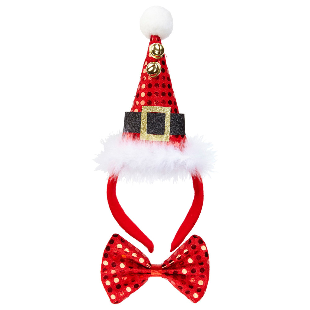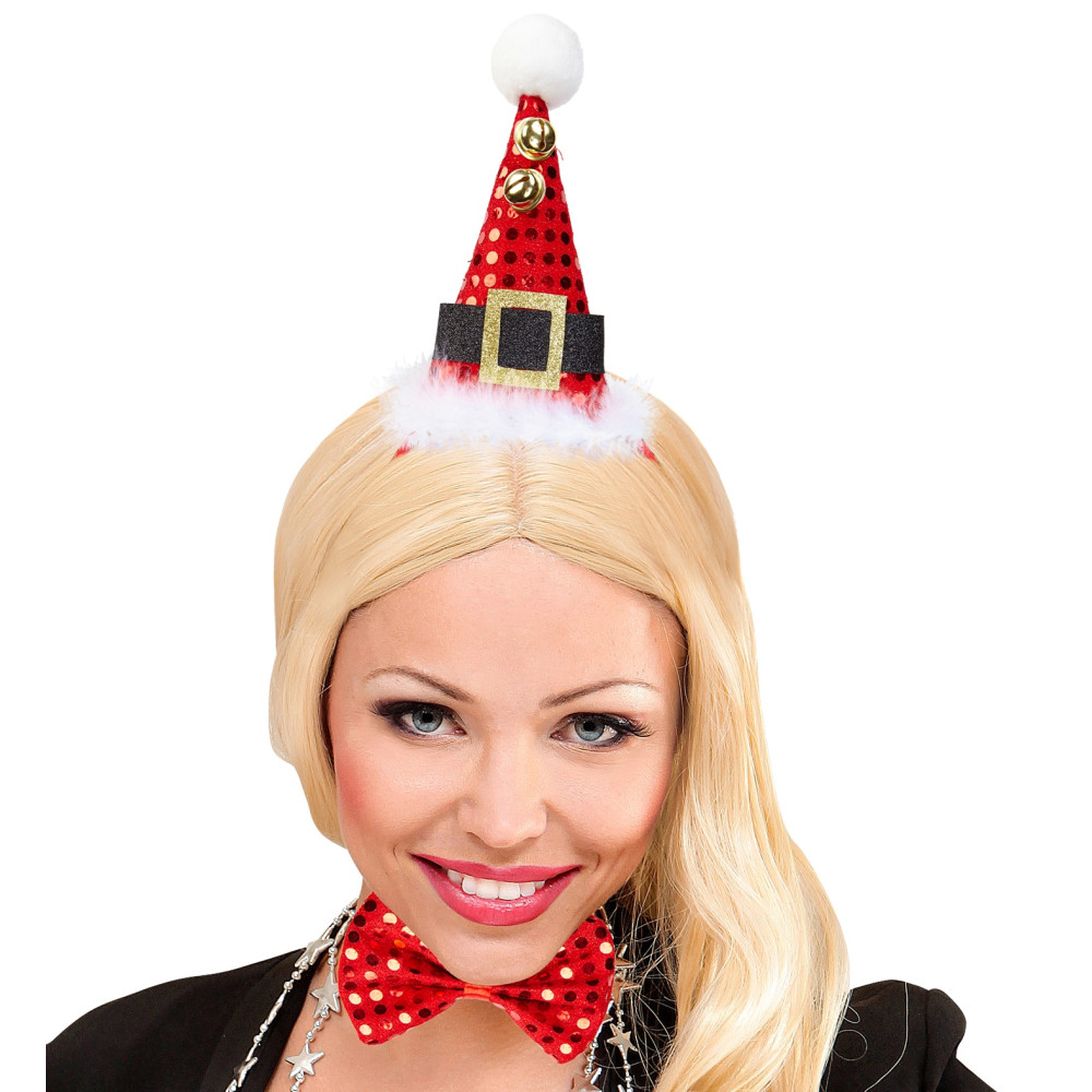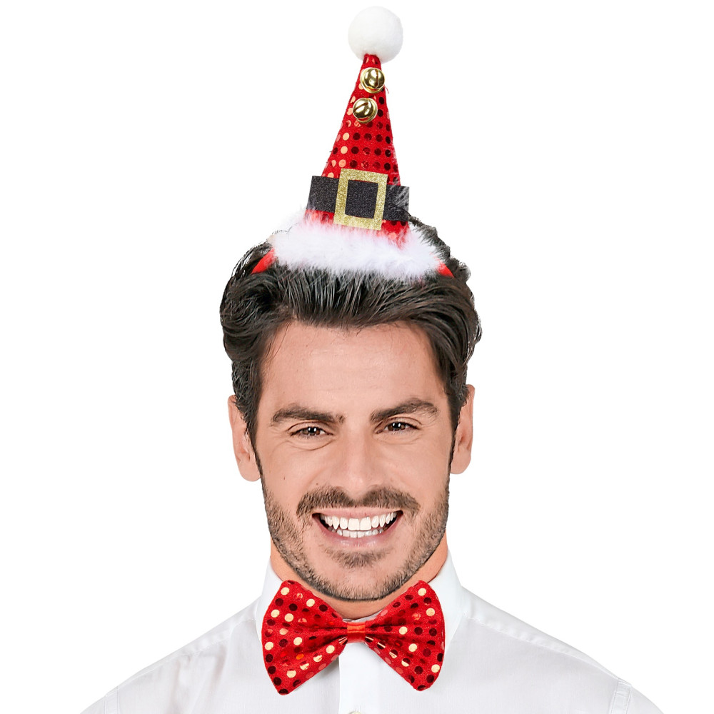 "SET MINI CHAPEAU PAILLETTES PÈRE NOEL AVEC 2 CLOCHES ET NOEUD PAPILLON"