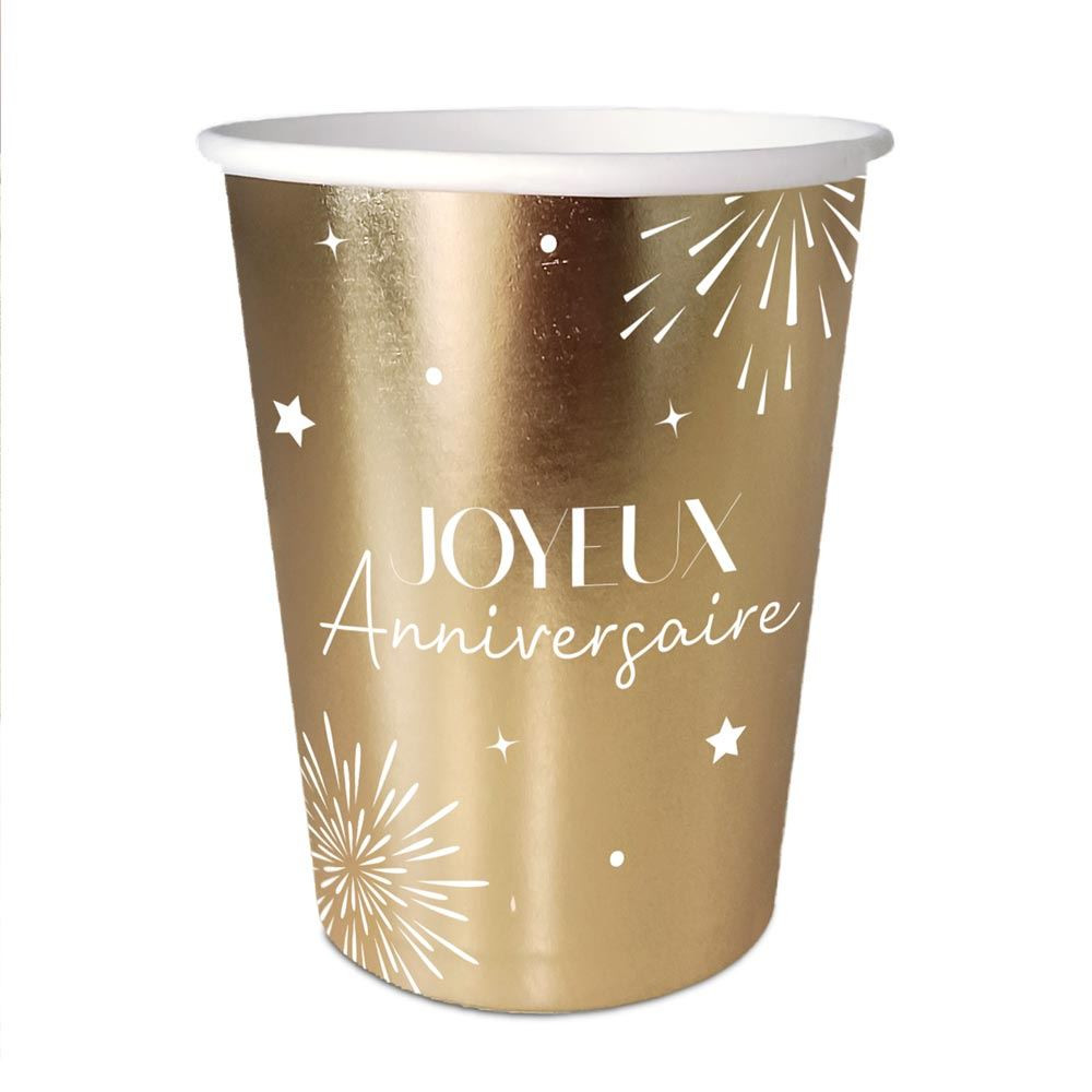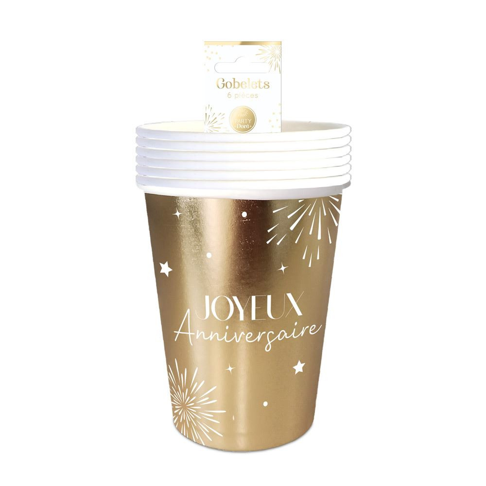 Thématique Anniversaire. Idéal pour un rayon Décoration Table / Décoration Anniversaire / Party Doré / Pack Gobelets / Gobelets.