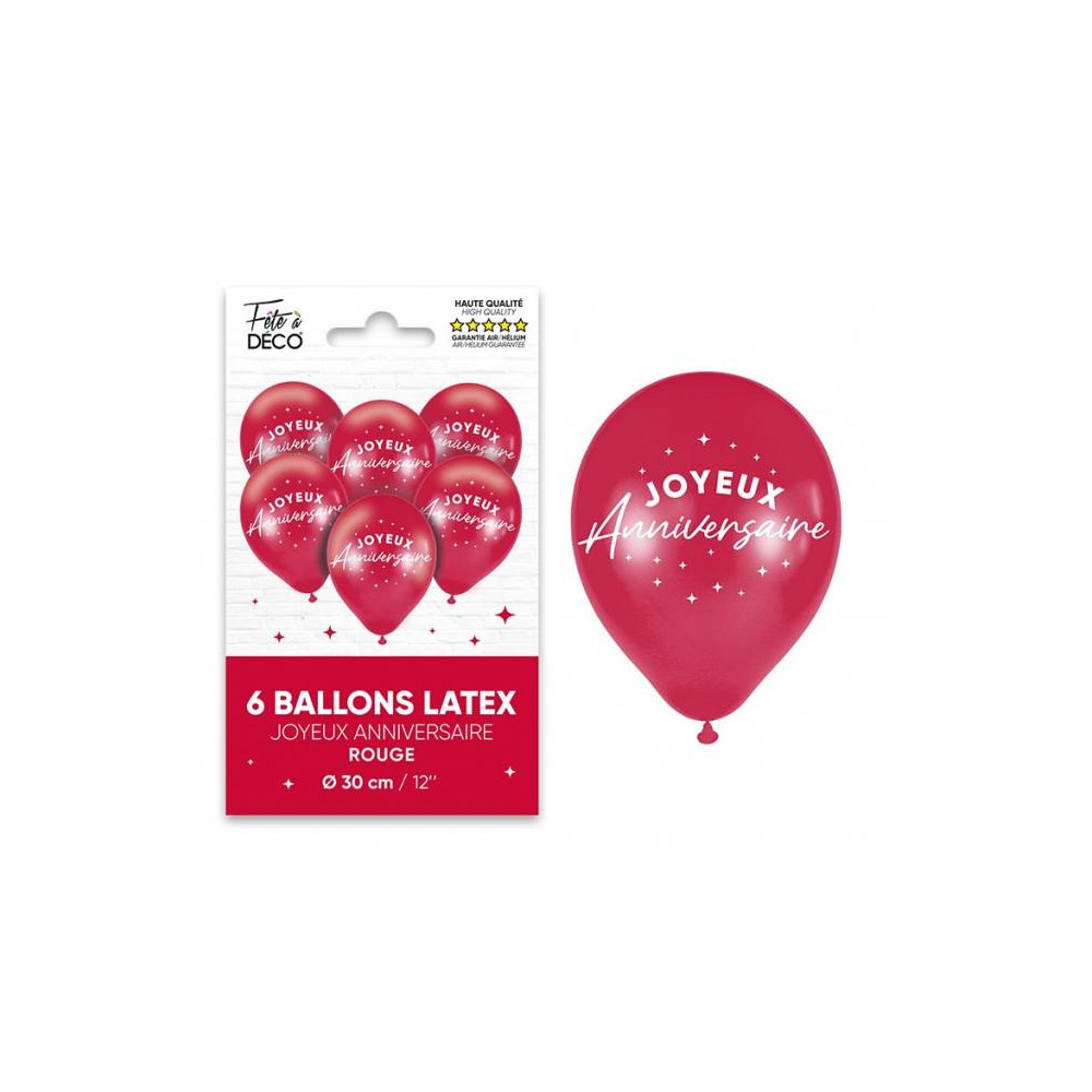 SACHET 6 BALLONS LATEX " JOYEUX ANNIVERSAIRE "