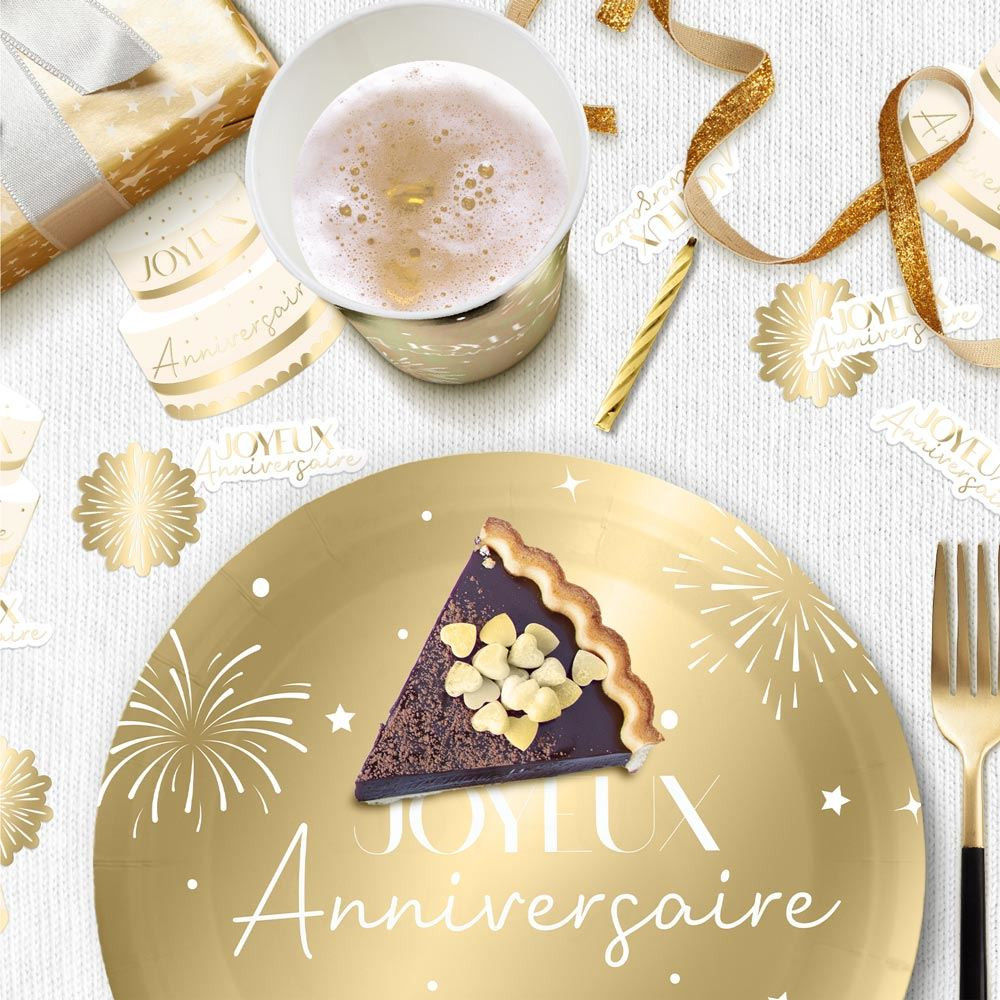Thématique Anniversaire. Idéal dans un rayon Décoration Anniversaire / Décoration Table / Party Doré / Trio Décoration Table.