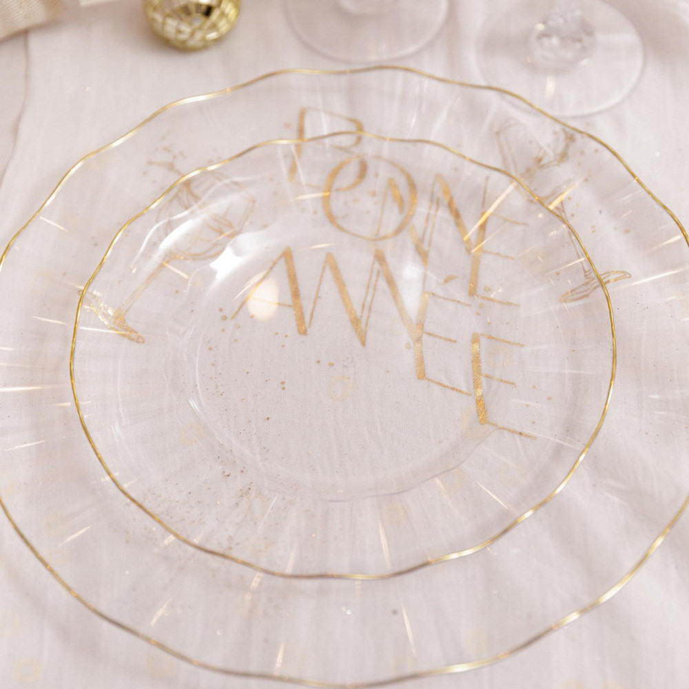 6 Petites Assiettes Réutilisables Plastique Transparent et Or