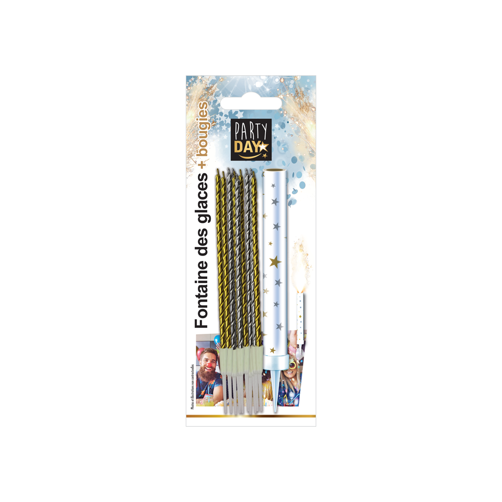 Fontaines des glaces 12cm avec 10 fines bougies or et argent en cire