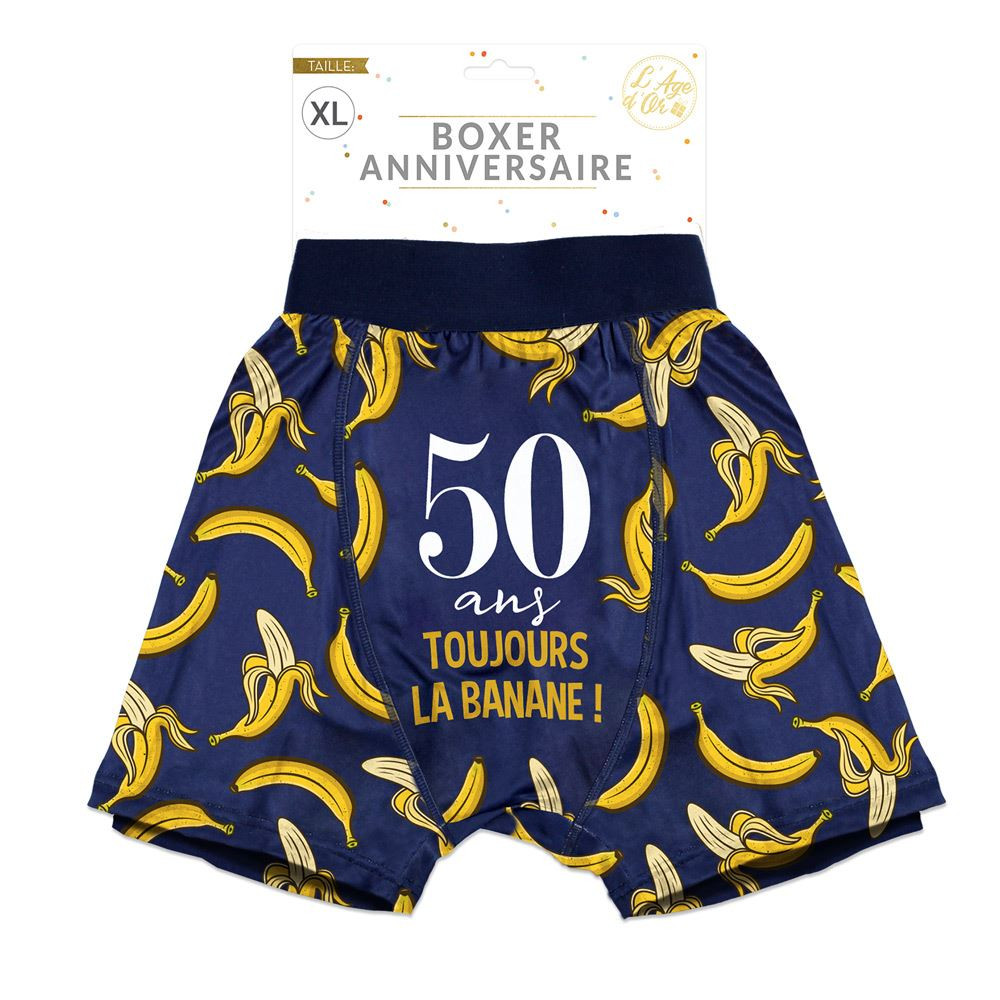 Pour un cadeau original et humoristique à offrir lors des 50 ans d'un proche, notre boxer taille XL "50 ans, toujours la banane" est fait pour vous.