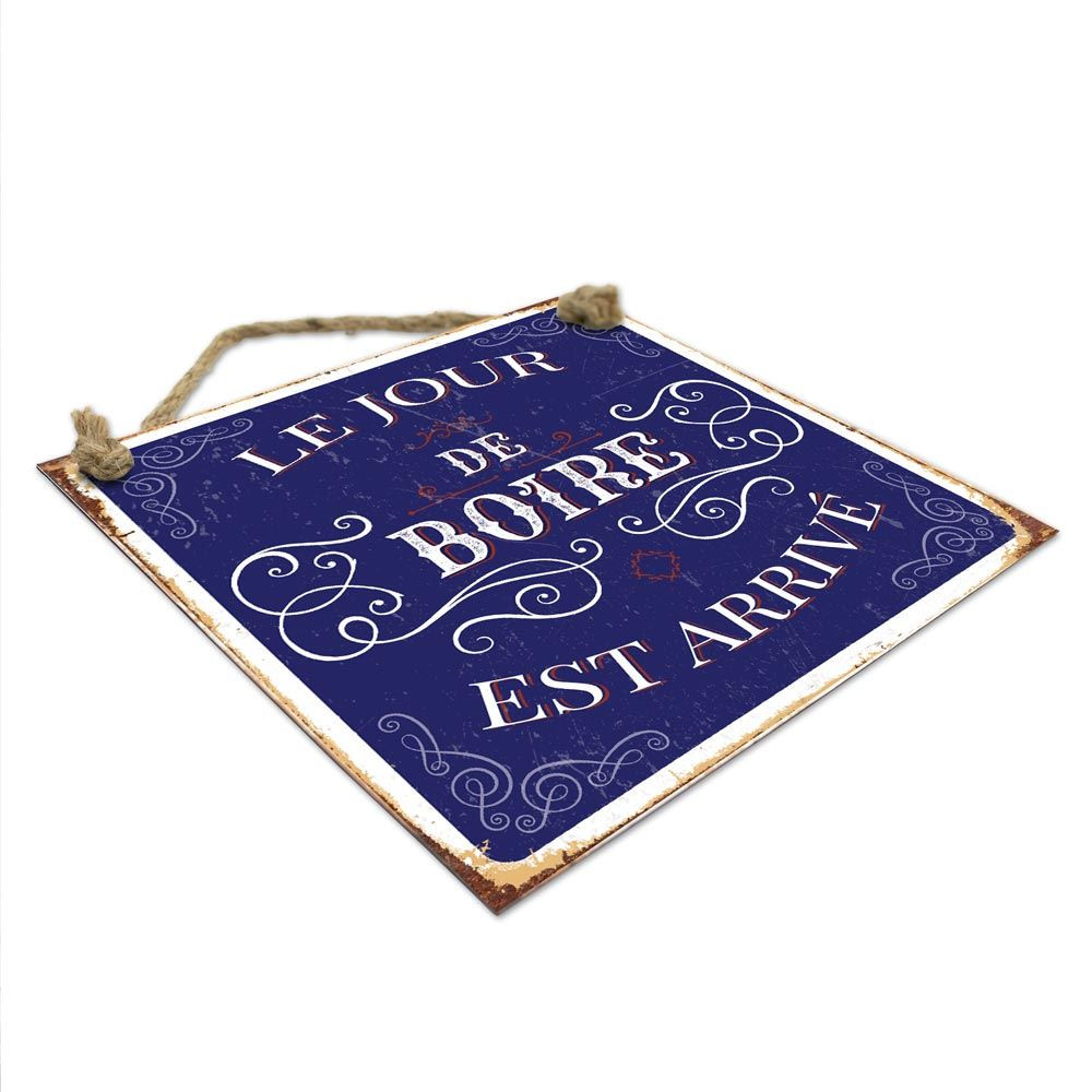 Avec une note d’humour, un zeste de convivialité et quelques amis, cette plaque murale prendra vite sa place sur un mur de votre maison. Avec l inscription « le jour de boire est arrivé ».