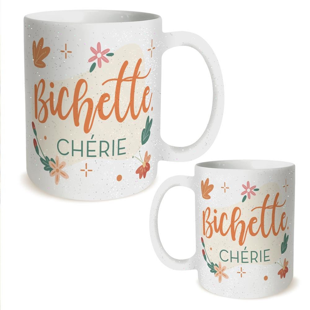 Ce mug à paillettes humoristique "Bichette cherie" est une idée de cadeau originale pour un évènement entre ami(e)s ou pour un(e) proche.