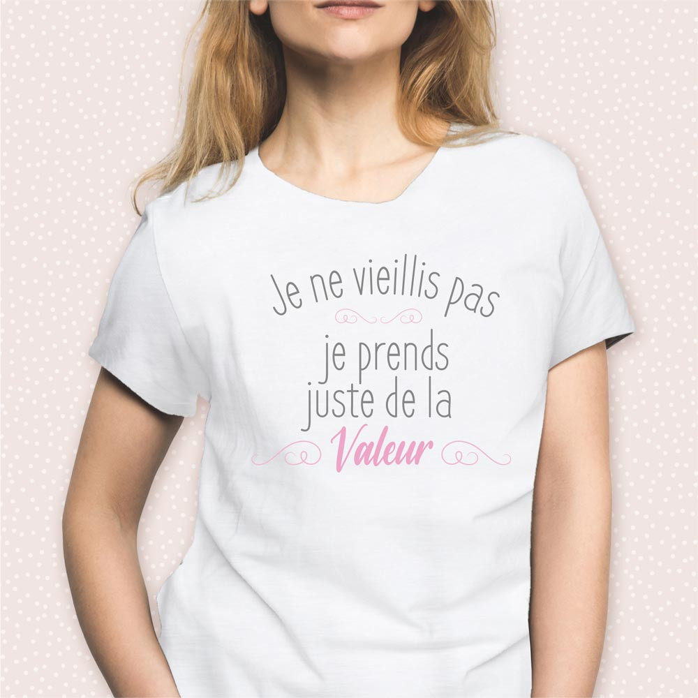comprenant la mention "Je ne vieillis pas, je prends juste de la valeur" en fera un cadeau