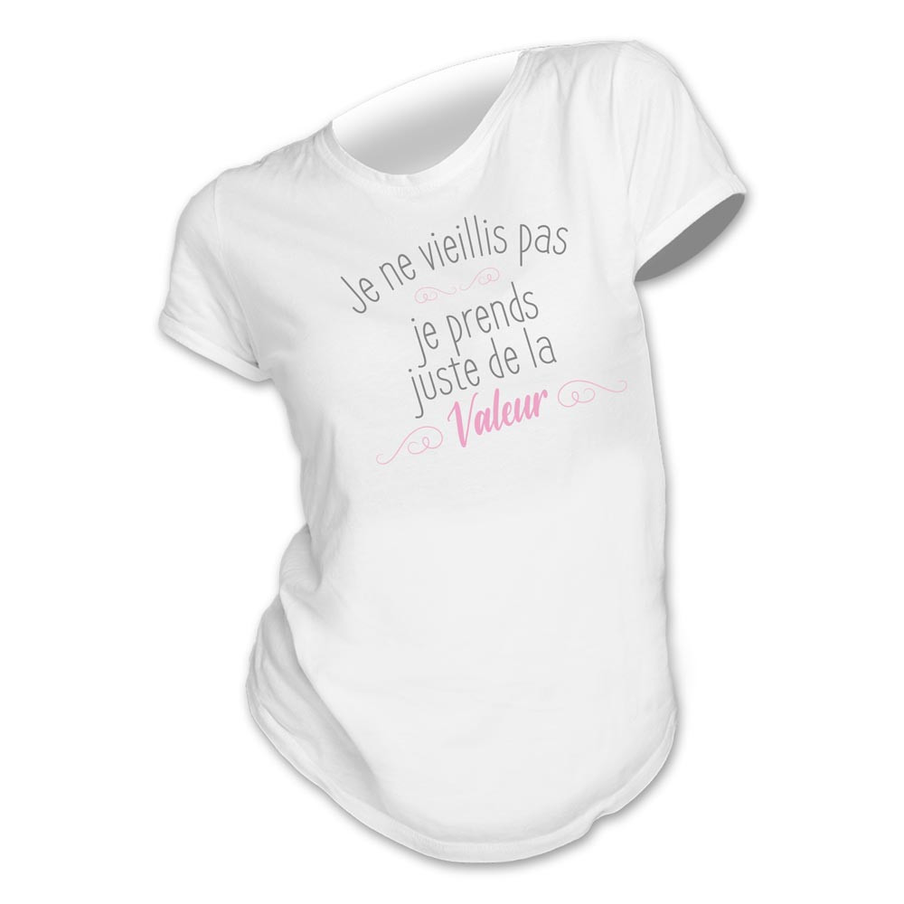Caractéristiques du T Shirt "Je ne vieillis pas, je prends juste de la valeur" taille M :