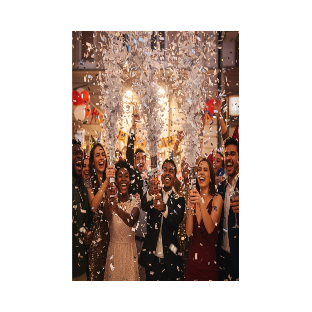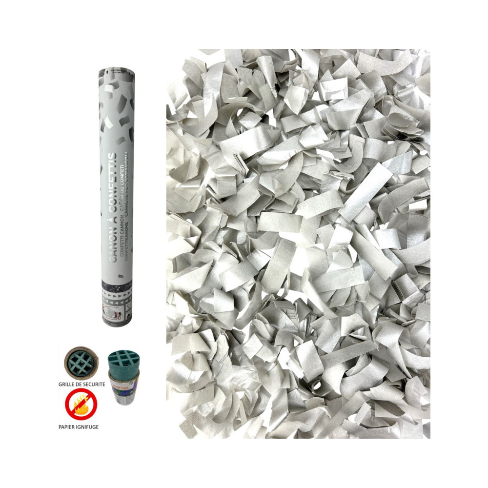 Canon à confettis 40cm papier ARGENT Ininflammable