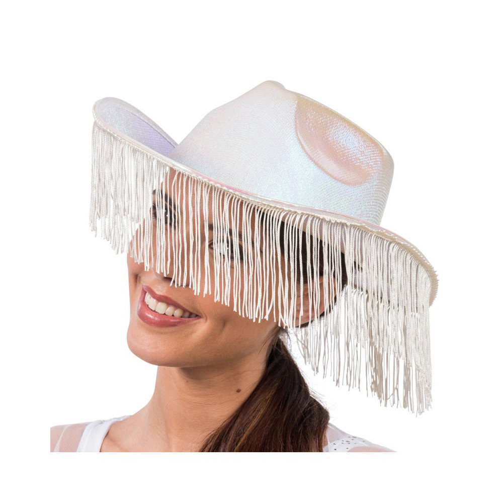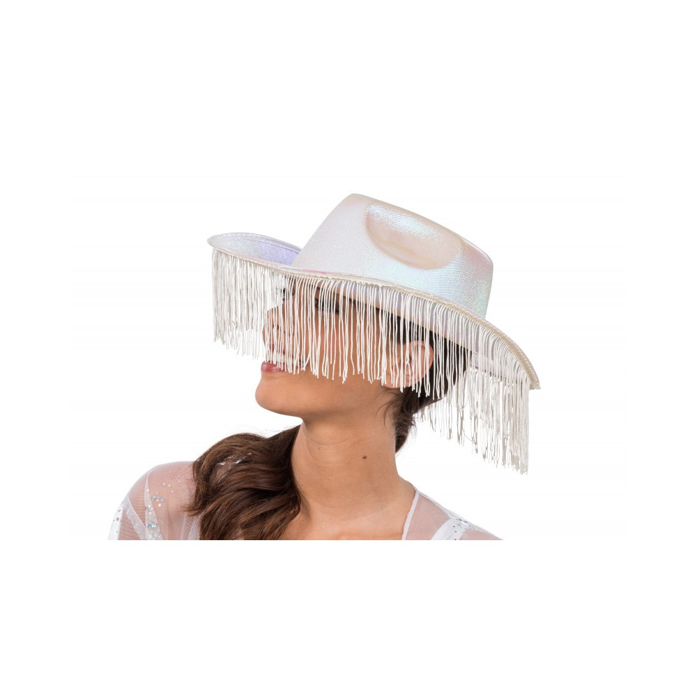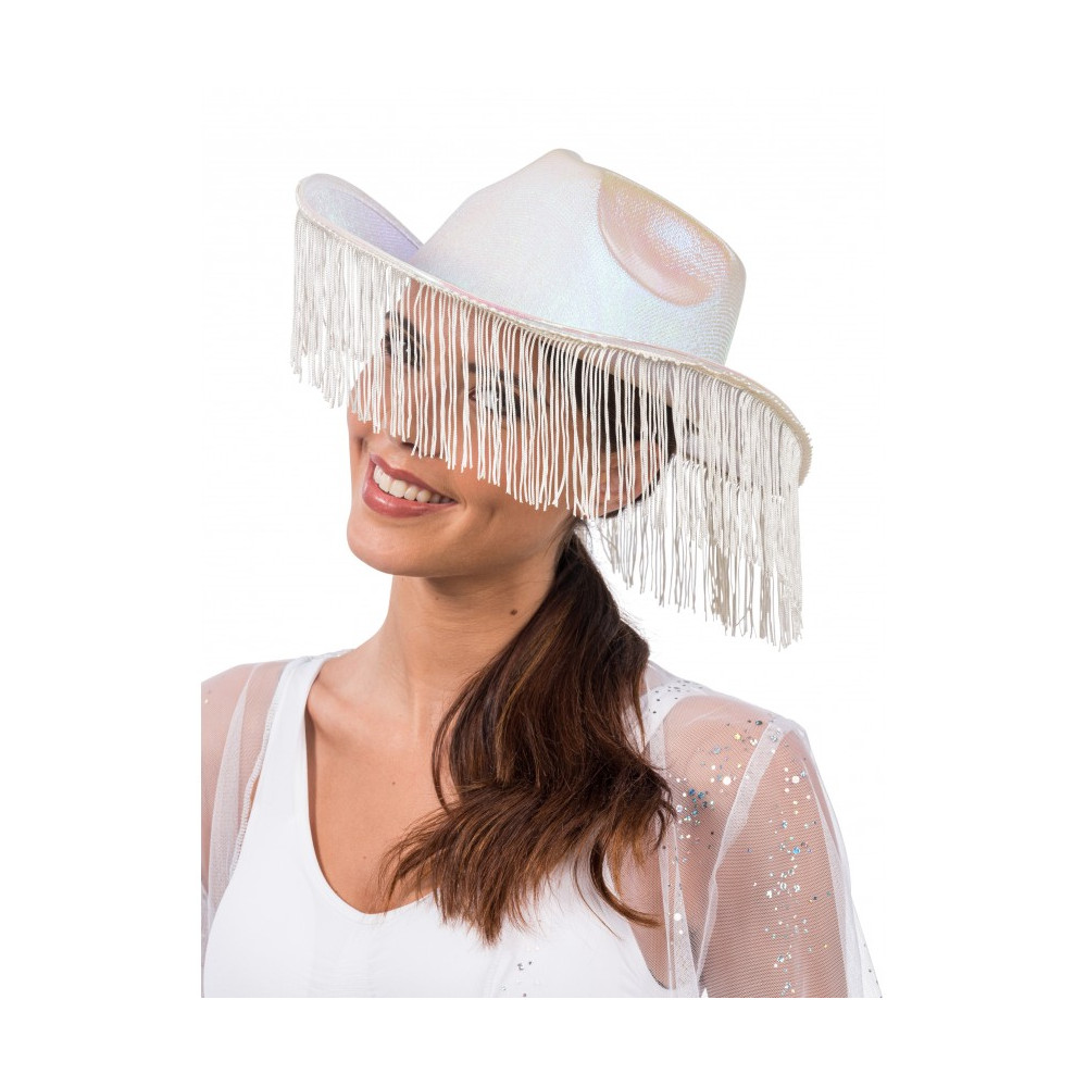 CHAPEAU DE COWBOY BLANC IRISE AVEC FRANGES