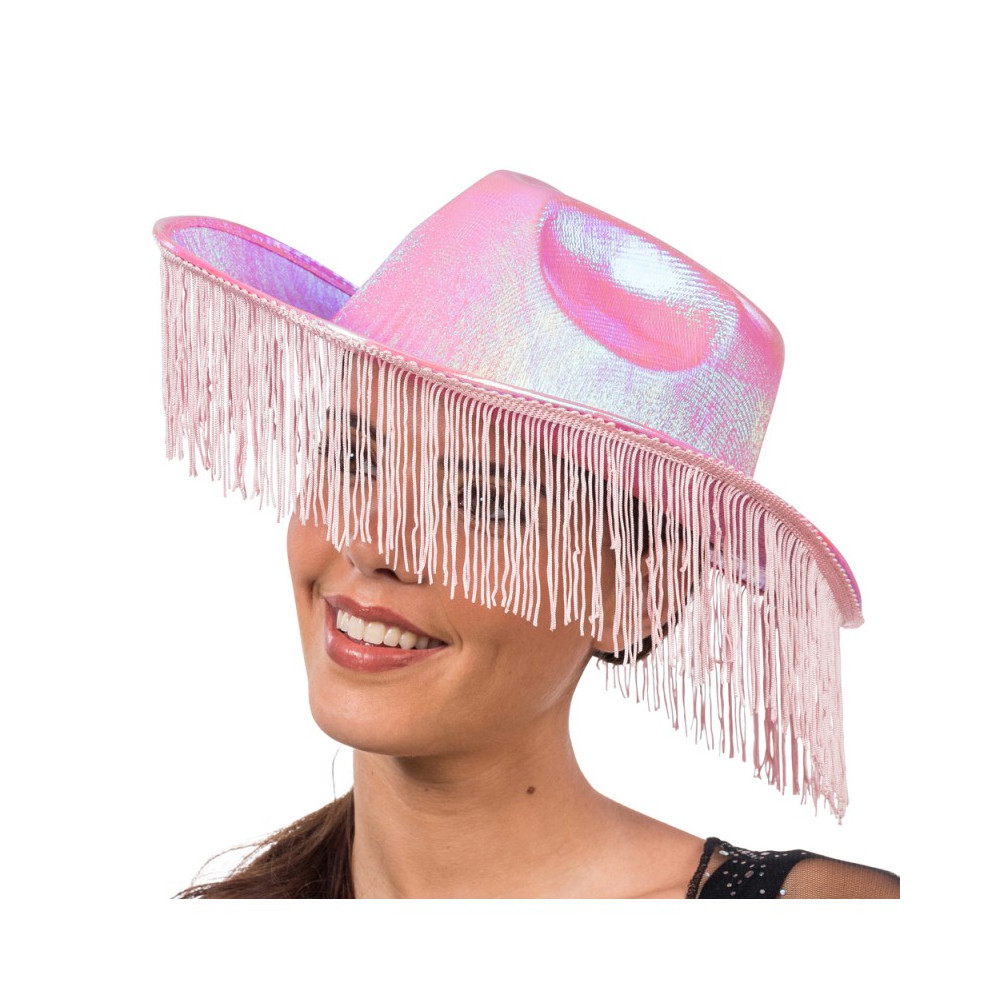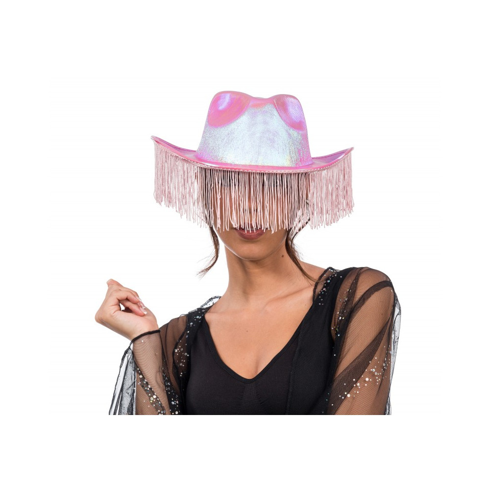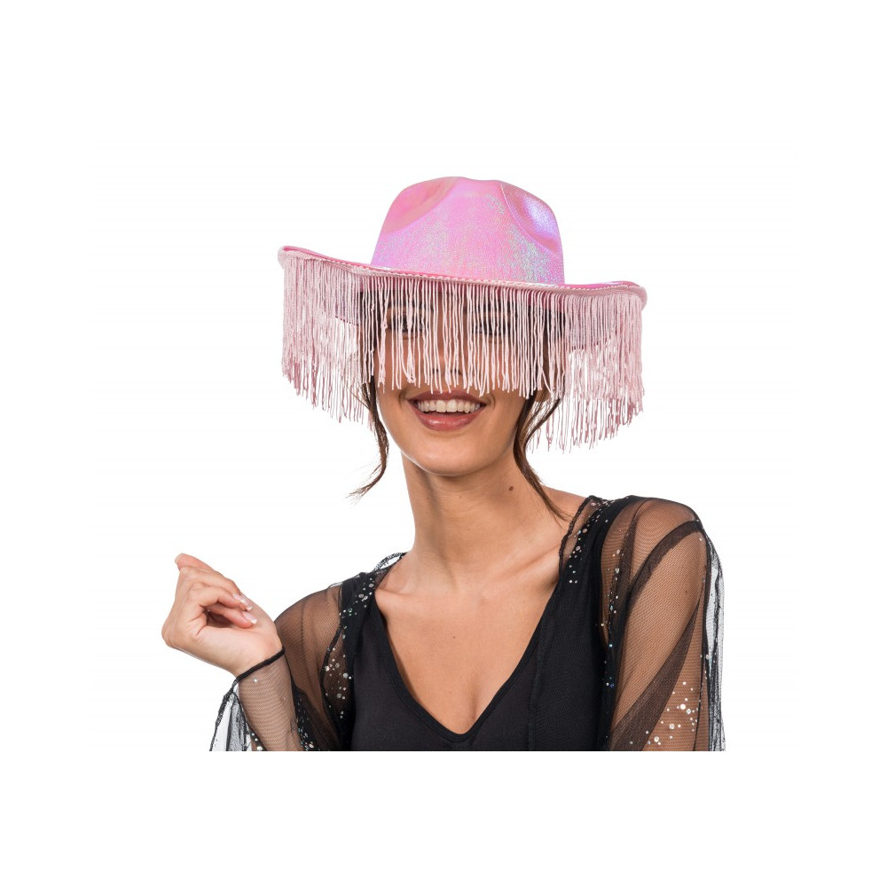 CHAPEAU DE COWBOY ROSE IRISE AVEC FRANGES