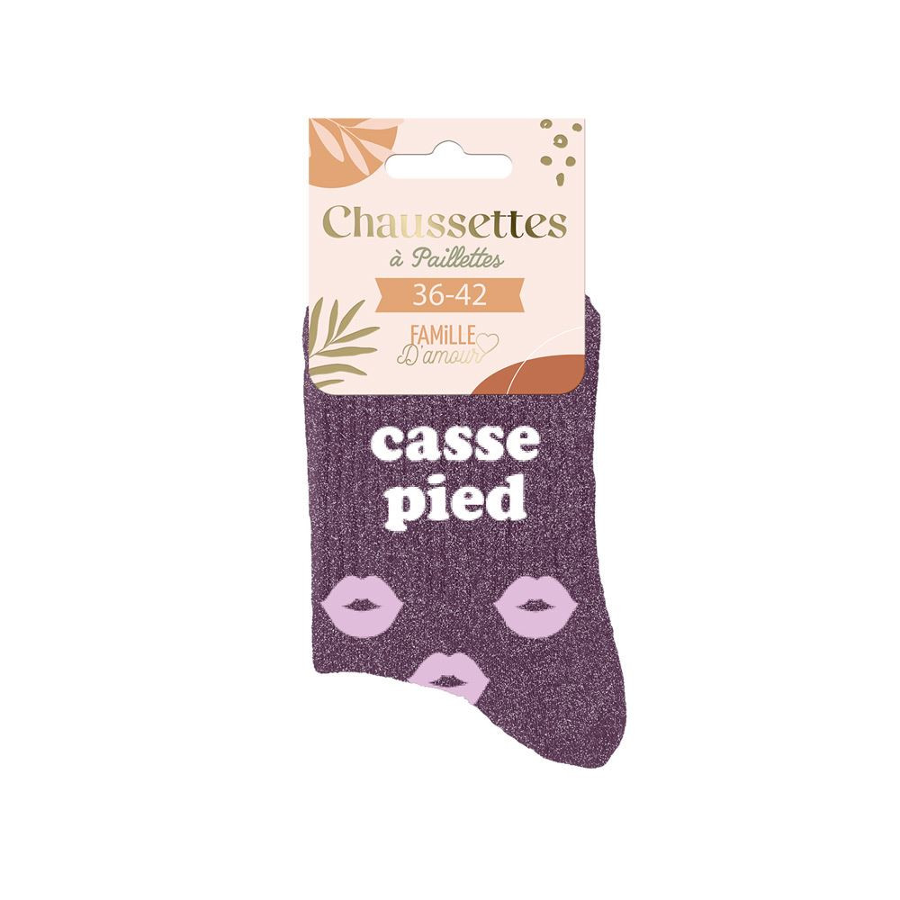 Faîtes un cadeau humoristique à votre amie en lui offrant notre paire de chaussettes à paillettes "Casse Pied".