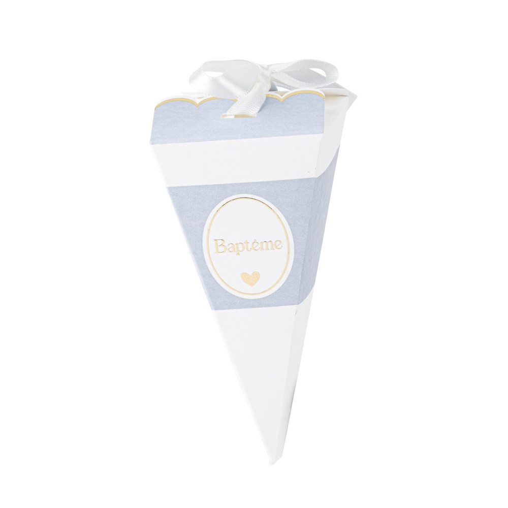 10 Contenants "Baptême" Berlingot Papier Blanc, Bleu Orage et Or