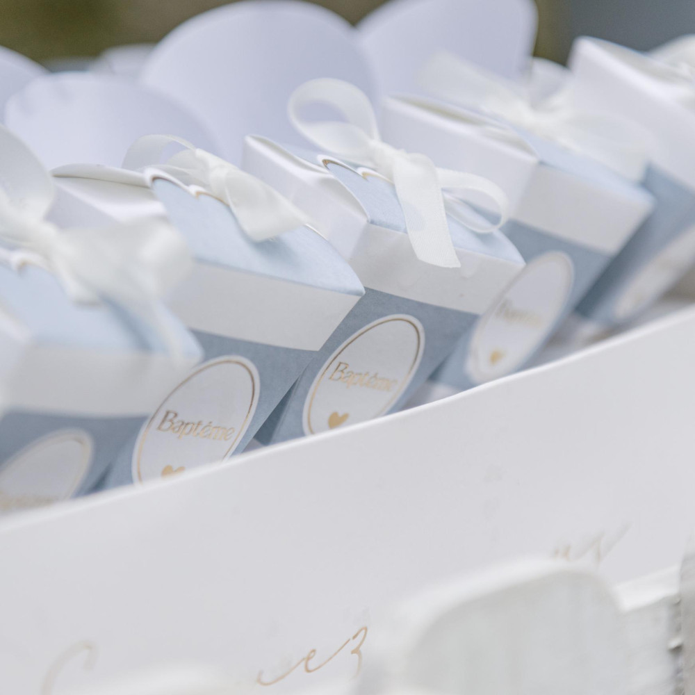 Moderne et colorée, notre gamme Baptême sublimera votre événement avec sobriété et douceur. Remerciez vos convives avec de petites attentions en remplissant ces contenants de douceurs.