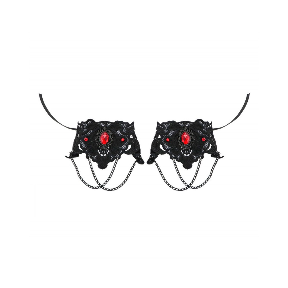 LOT 2 MANCHETTES GOTHIQUES NOIRES PIERRE ROUGE