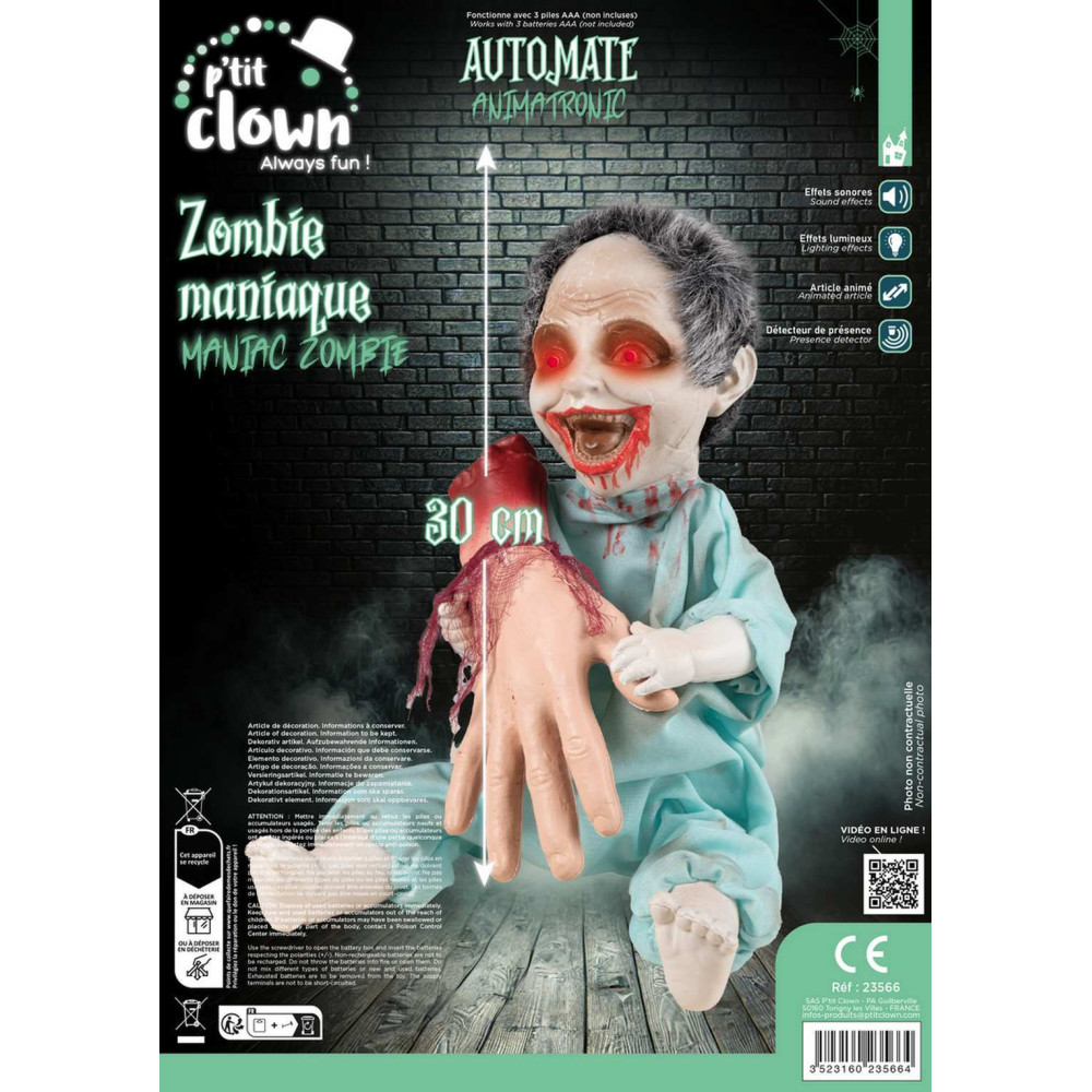 Zombie maniaque avec main arraché - animé, sonore, lumineux