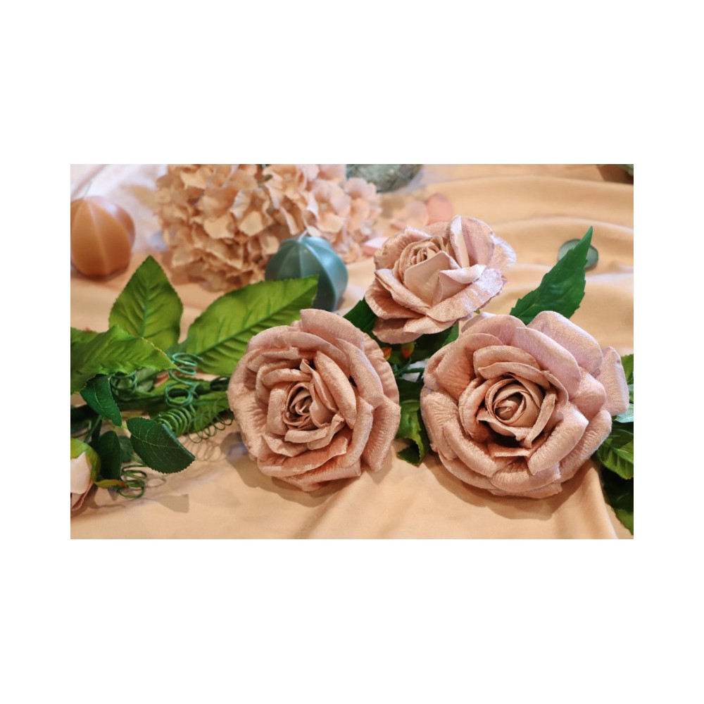 CENTRE DE TABLE ROSES LUXE VELOURS ROSE POUDRE