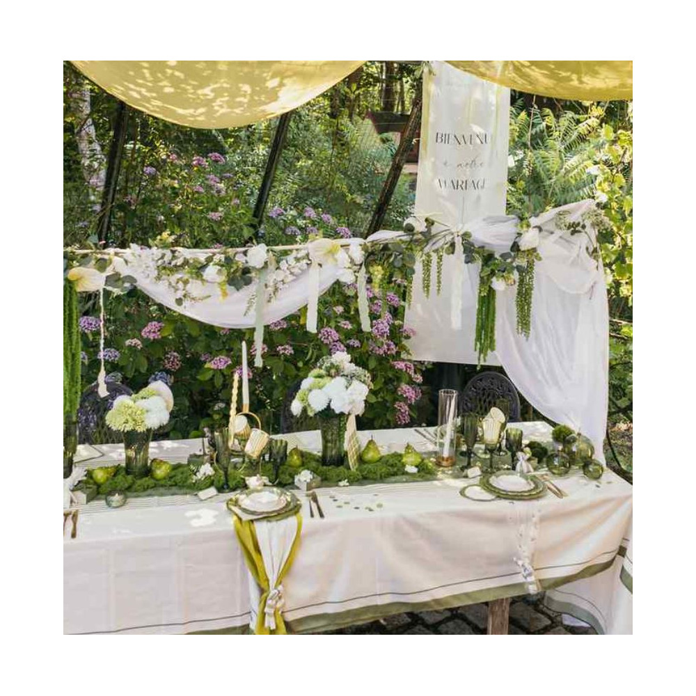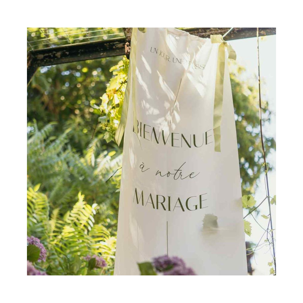 Accueillez vos invités grâce à notre nouveau panneau de bienvenue, une exclusivité signée Artyfêtes. Réalisé dans un beau tissu, il allie tombé élégant et toucher raffiné. C'est l'incarnation du charme et de l'élégance à la française.